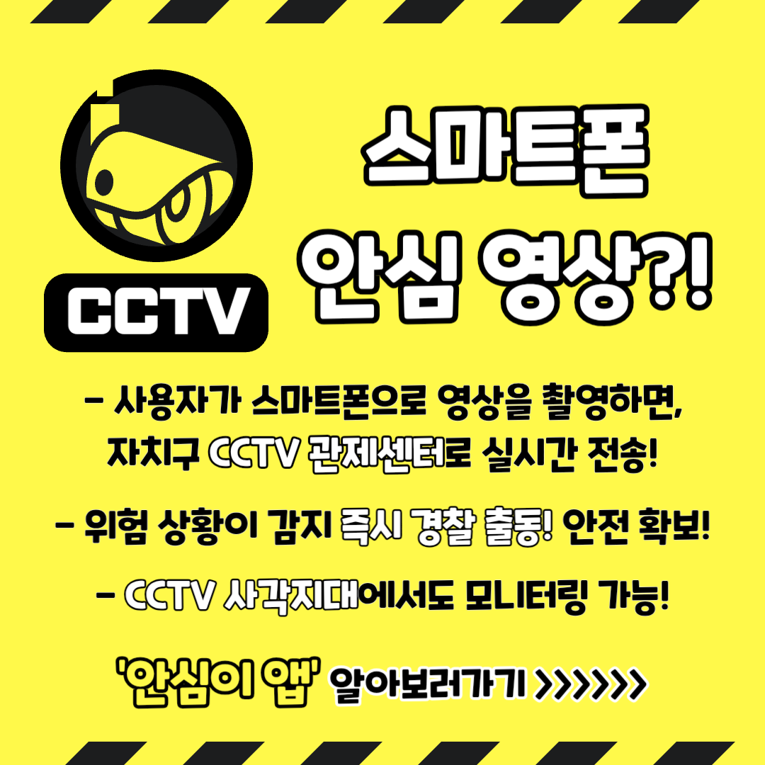 즉, CCTV가 없는 골목길이나 주택가에서도 내 스마트폰이 CCTV 역할을 하며, 관제센터에서 실시간으로 모니터링 해주는 것이죠!