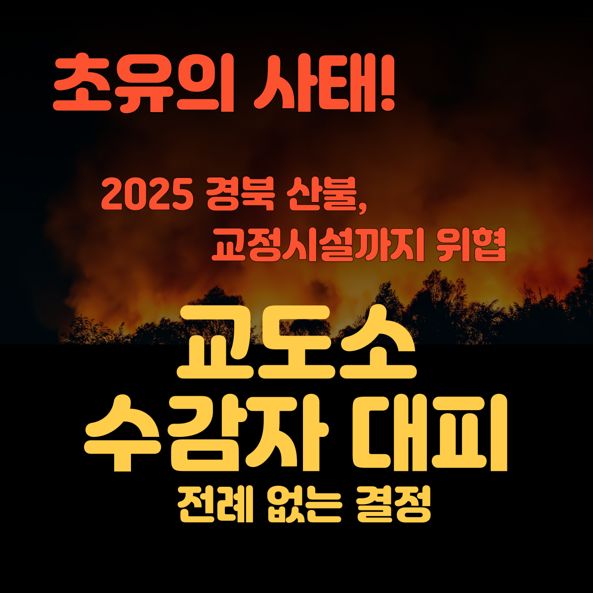 최근 경북 지역에서 발생한 대규모 산불이 교정시설 인근까지 확산되면서, 사상 초유의 교도소 수감자 긴급 이송 사태가 벌어졌습니다. 이번 사건은 단순한 산불 피해를 넘어, 국가 주요 시설에까지 영향을 끼쳤다는 점에서 많은 주목을 받고 있습니다.