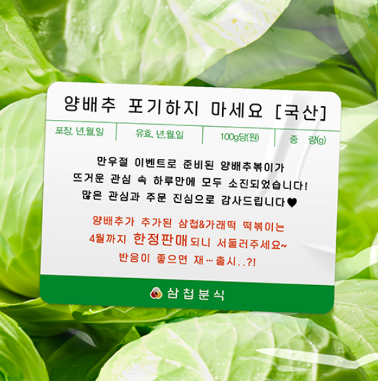 삼첩분식에서는 만우절을 맞아 '양배추볶이'를 출시했습니다.
