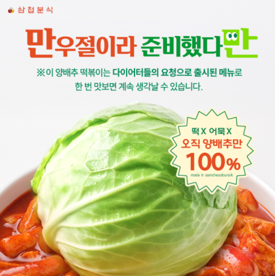 🥬 삼첩분식 – 양배추볶이 출시?!