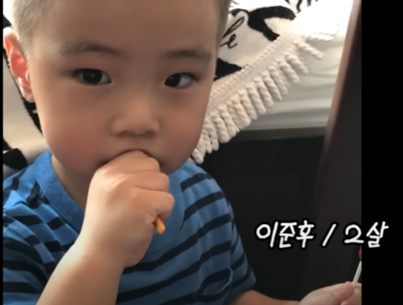 영상 속 준후 군은 과자를 먹으며 미소 짓는 모습, "아빠 이름이 뭐야?"라는 질문에 “이변헝”이라고 답하는 등 유쾌하고 귀여운 매력을 보여주었습니다.