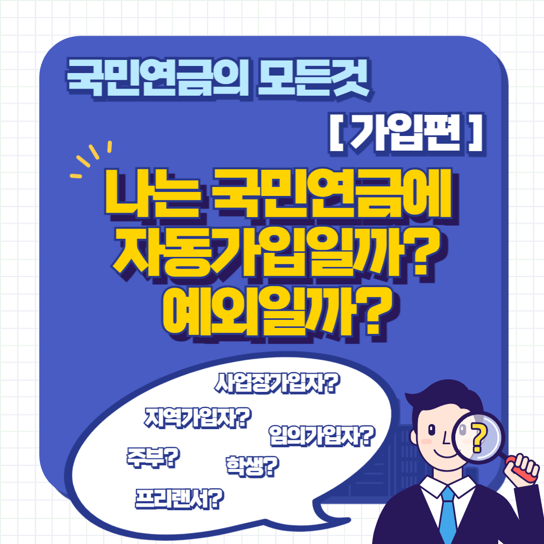 이런 질문들, 한 번쯤 해보셨을 겁니다. 국민연금은 우리 모두의 노후를 위한 중요한 제도지만, 정작 내가 가입 대상인지, 자동으로 가입되는지, 아니면 예외인지 헷갈리는 경우가 많습니다. 오늘은 당신의 상황에 맞는 국민연금 가입 유형을 명확하게 알려드립니다!
